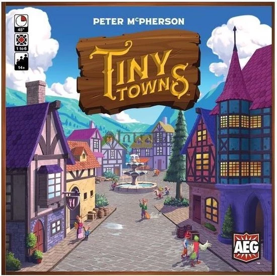 You are the mayor of a tiny town in the forest in which the smaller creatures of the woods have created a civilization hidden away from predators. This new land is small and the resources are scarce, so you take what you can get and never say no to building materials. Cleverly plan and construct a thriving town, and don’t let it fill up with wasted resources! Whoever builds the most prosperous tiny town wins! In Tiny Towns, your town is represented by a 4×4 grid on which you will place resource cubes in specific layouts to construct buildings. Each building scores victory points (VPs) in a unique way. When no player can place any more resources or construct any buildings, the game ends, and any squares without a building are worth -1 VP. The player with the most VP wins! Naam Speelduur Aantal spelers Leeftijd Uitgever Designer Soort Taal Taalonafhankelijk Tiny Towns 45 minuten 1-6 14+ Alderac Entertainment Group Peter McPherson City Building Engels Nee