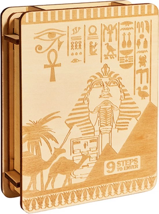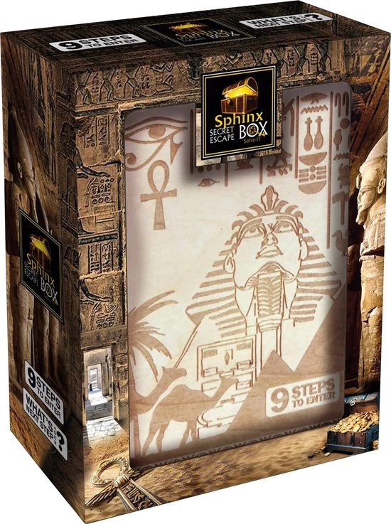 Bij elk Secret Escape Box staat een hint op de verpakking, net zoals in Escape Rooms, daarom noemen we ze Secret Escape Boxen. De toegang tot de Egyptische piramiden werd altijd geheim gehouden en omvatte onverwachte uitdagingen. Voornamelijk om de vele kostbaarheden binnenin veilig te stellen, waaronder natuurlijk de gemummificeerde farao. Deze Sphinx Secret Box biedt ook zo?n uitdaging voordat je je schat erin kunt verbergen. Kun jij je weg vinden en de doos openen? Slechts 9 stappen om binnen te komen en 9 stappen terug om weer te beveiligen. We schatten de moeilijkheidsgraad voor deze Sphinx Secret Escape Box in op 3,5 op 4 sterren.