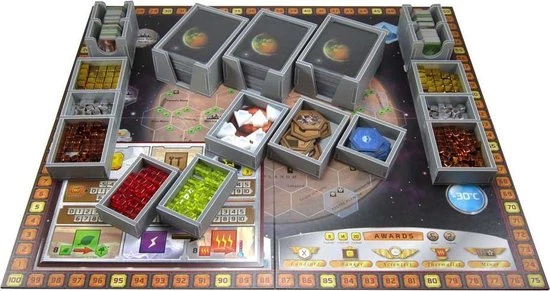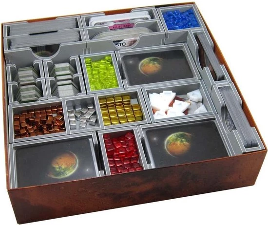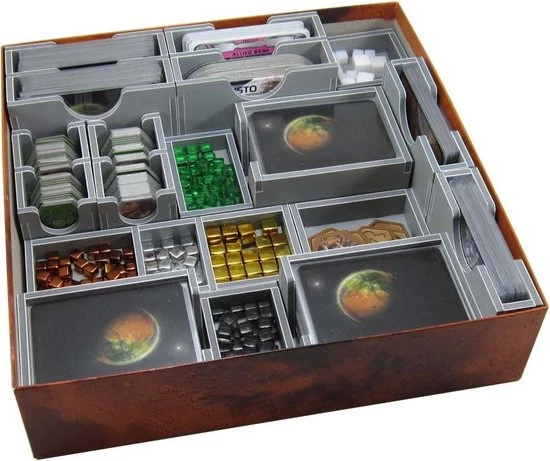 Insert compatible with Terraforming Mars?, and includes space for the Hellas & Elysium?, Venus Next?, Prelude? and Colonies? expansions. Insert also compatible with Turmoil? expansion components, see bottom of the page for more details.