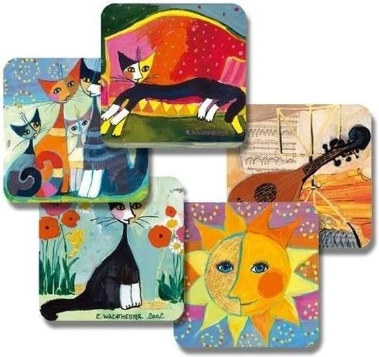 Memo spel van de kunstenares Rosina Wachtmeister met 36 kaarten. Uiteraard vol met katten afbeeldingen. 36 kaarten (18 paar), kaartformaat: ongeveer 5 x 5 cm.