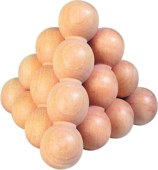 Probeer met dit leerzame spel alle houten stukjes zo te vormen, dat er een knikkerpiramide ontstaat. De puzzel wordt geleverd in een katoenen zakje en is 6-delig.