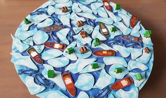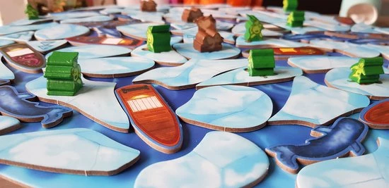 In Ice Floes & Foes gaan 2-6 spelers er hun missie van maken om de walvissen en zeehonden te redden van de vissersboten en jagers. Schuif ijsschotsen op het bord, en probeer de vissersboten en jagers er aan de andere kant van af te laten vallen. Maar kijk uit dat je er geen walvissen en zeehonden vanaf schuift!