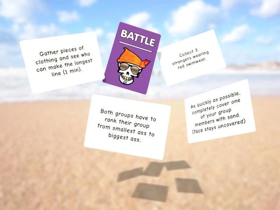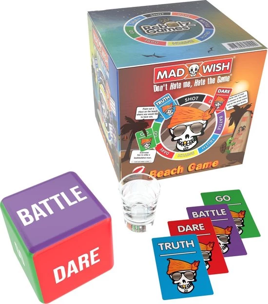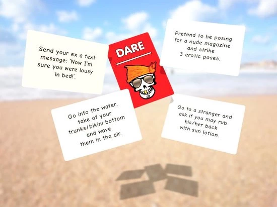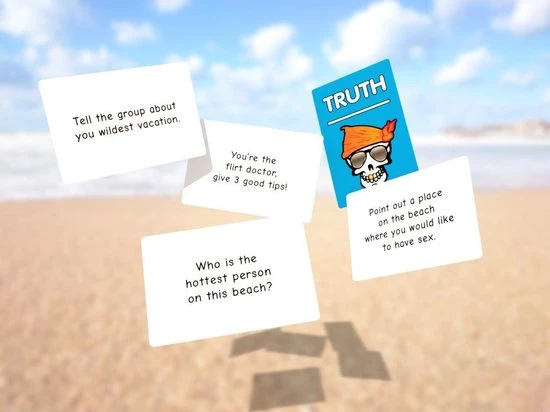 Het spel wordt geleverd met een dobbelsteen die de uitkomst voor elke speler zal kiezen, waaronder: Truth, Dare, Go (alle spelers moeten een opdracht uitvoeren; de laatste neemt een shot), Snitch (speler kan een truth or dare voor iemand anders maken), Battle (spelers worden in twee groepen verdeeld en nemen het tegen elkaar op) en Shot. De opdrachten hebben allemaal betrekking op activiteiten die op het strand worden gedaan en zullen een gewone stranddag memorabel maken. Inhoud 75x Waarheid kaarten 75x Durf kaarten 50x Ga kaarten 50x Slag kaarten 1x dobbelsteen 1x shotglas Dit spel is in het engels beschikbaar.