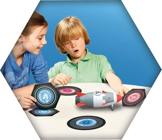 Een verwarde professor heeft een raket afgevuurd naar de aarde! Leg je gecodeerde kaarten voor de raket om ze te besturen en laat ze ontploffen op het terrein van je tegenspelers. Observeer, reageer snel en red de aarde!