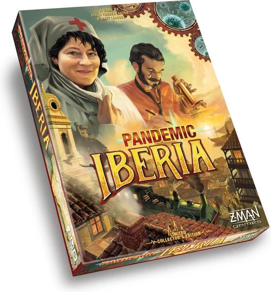 Welkom op het Iberisch schiereiland! Deze limited collector’s edition van Pandemic Iberia brengt het zenuwslopende spel terug naar 1848, waar je als lid van The Royal Philanthropic Expedition op zoek gaat naar een geneesmiddel voor de vier ziektes malaria, tyfus, gele koorts en cholera. Kruip in de huid van een verpleger, spoorwegbeambte, lokale dokter, marinier of andere karakters en red de mensheid van deze dodelijke dreigingen! Je reist per koets, boot of met de trein van Barcelona tot Lissabon om de bevolking te helpen. De ontwikkeling van de spoorwegen en de distributie van gezuiverd water helpen je om de verspreiding van ziektes te vertragen in deze nieuwe versie van Pandemic. Lukt het jou om de bevolking te redden?