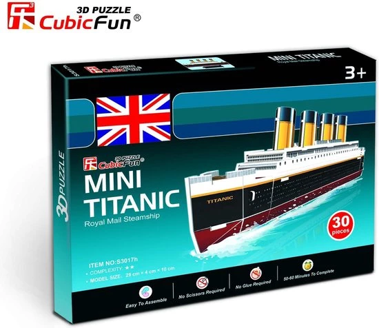 Het model van deze Titanic bestaat uit 30 onderdelen en is 29x4x10 cm.