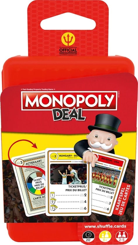 De voetbalhelden van de Red Devils in het wereldbekende Monopoly Kaartspel. Speel dit gezellige spel op weg naar het stadion!