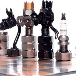 Hinz & Kunst Schaakspel Metaal Handgemaakt Schaakbord Met Figuren Schaakstukken Thema Cadeaus