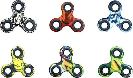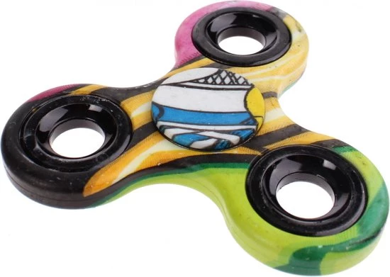 Mensen die zich slecht kunnen concentreren hebben er baat bij als ze ergens mee kunnen friemelen. Maar de meeste zenuwtikken, zoals klikken met jouw pen of trillen met jouw been, zijn erg vervelend voor jouw omgeving. De fidget spinner is hiervoor het ideale gadget. Dit is een klein apparaatje wat je kunt laten draaien in jouw hand. Deze fidget spinner heeft drie poten en een vette multicolor print.